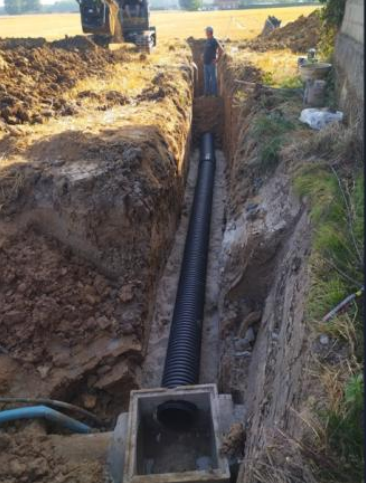 L’ancien drain reliant l’arrière de la salle des fêtes installé durant le remembrement n’arrivait plus à envoyer l’eau correctement vers la Rue de Merville et le secteur du Touquet. Le nouveau drain installé possède un diamètre supérieur à l’ancien. En complément, des éclusettes ont été posées en amont permettant la régulation de l’eau en période d’été et d’hiver. Des travaux d’hydrocurage des ponts passant sous la Rue de Merville et au niveau de la Rue Verte ont été réalisés en même temps pour garantir un écoulement optimal.
