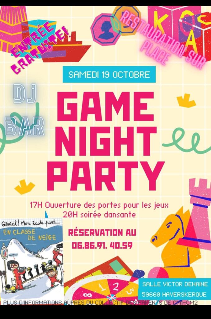 RDV le samedi 19 octobre pour la GAME NIGHT PARTY !